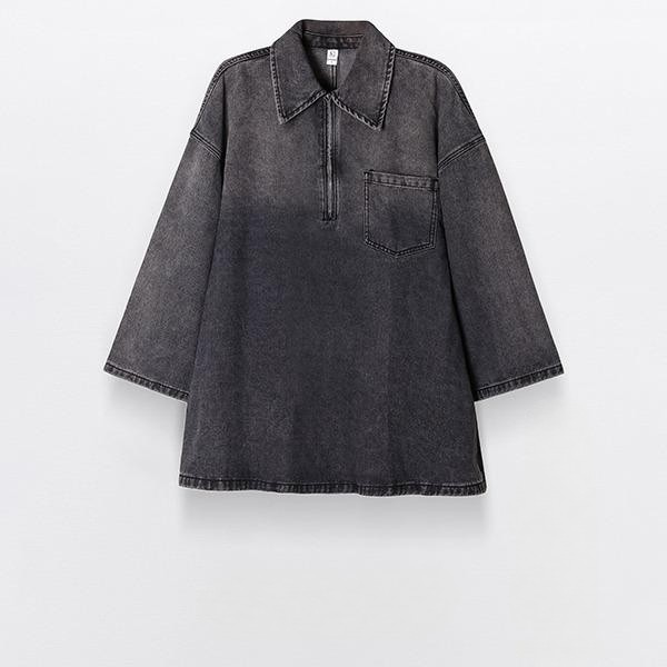 This stylish denim dress offers a modern twist on classic casual wear, featuring a flattering zip-front design with a subtle dip-dye effect for a trendy, gradient look. Its relaxed, oversized fit ensures comfort, while the collar and long sleeves provide versatility for layering or wearing solo. Pair it with boots for a chic, effortless outfit or add a belt for a more structured silhouette. Perfect for day-to-night wear, this dress is a must-have addition to any wardrobe.