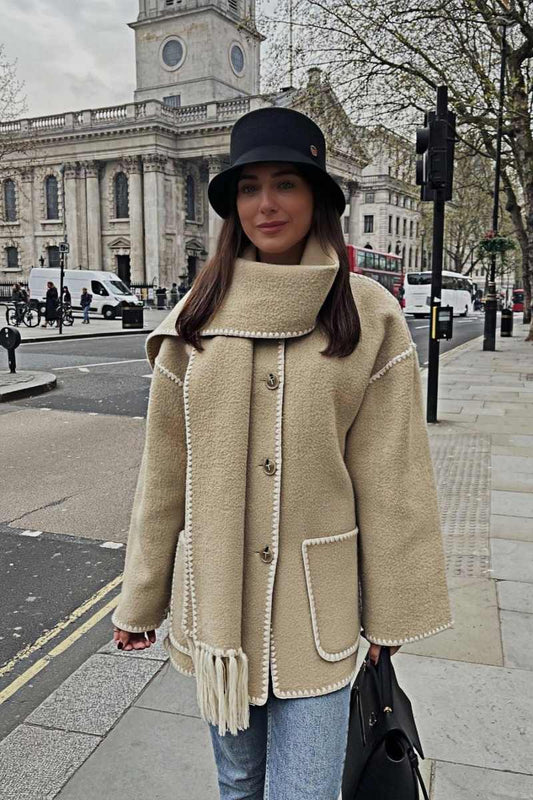 Casual Daily Solid Color Pocket Bow Decor O Neck Outerwear