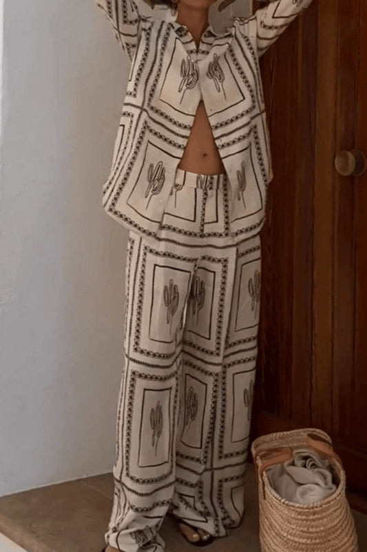 Botanical Floral Print Loose Pants Set